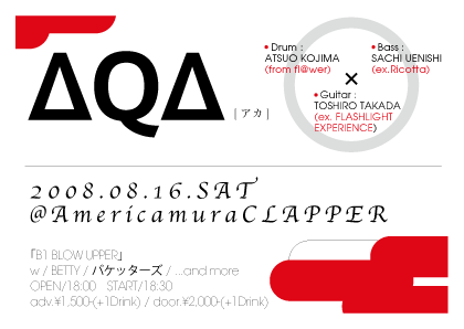 16日は3ピースインストバンド「AQA」(アカ)で出ます。